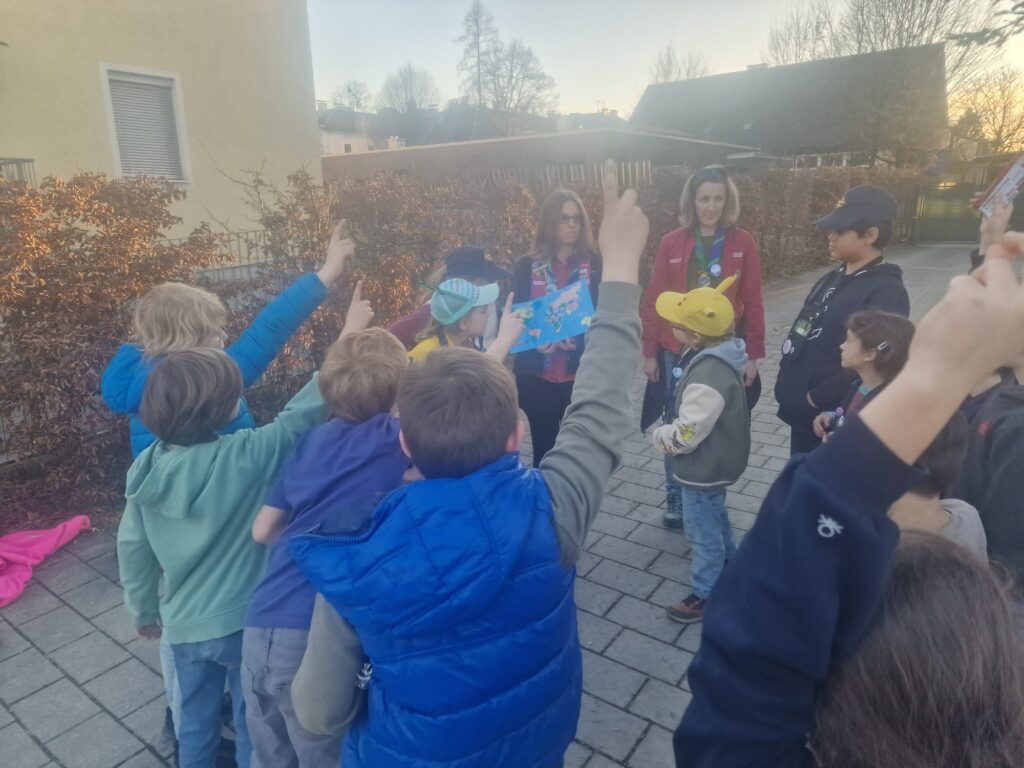In der heutigen Heimstunde haben wir uns auf eine spannende Weltreise begeben! Dafür machten wir uns zuerst mit einer Runde Evolution auf den Weg zum Dschungelflughafen. Dort begann auch schon das Boarding. Nachdem alle die Sicherheitskontrolle passiert hatten, brauchten wir nur noch unsere Tickets – und schon konnte die Reise losgehen!